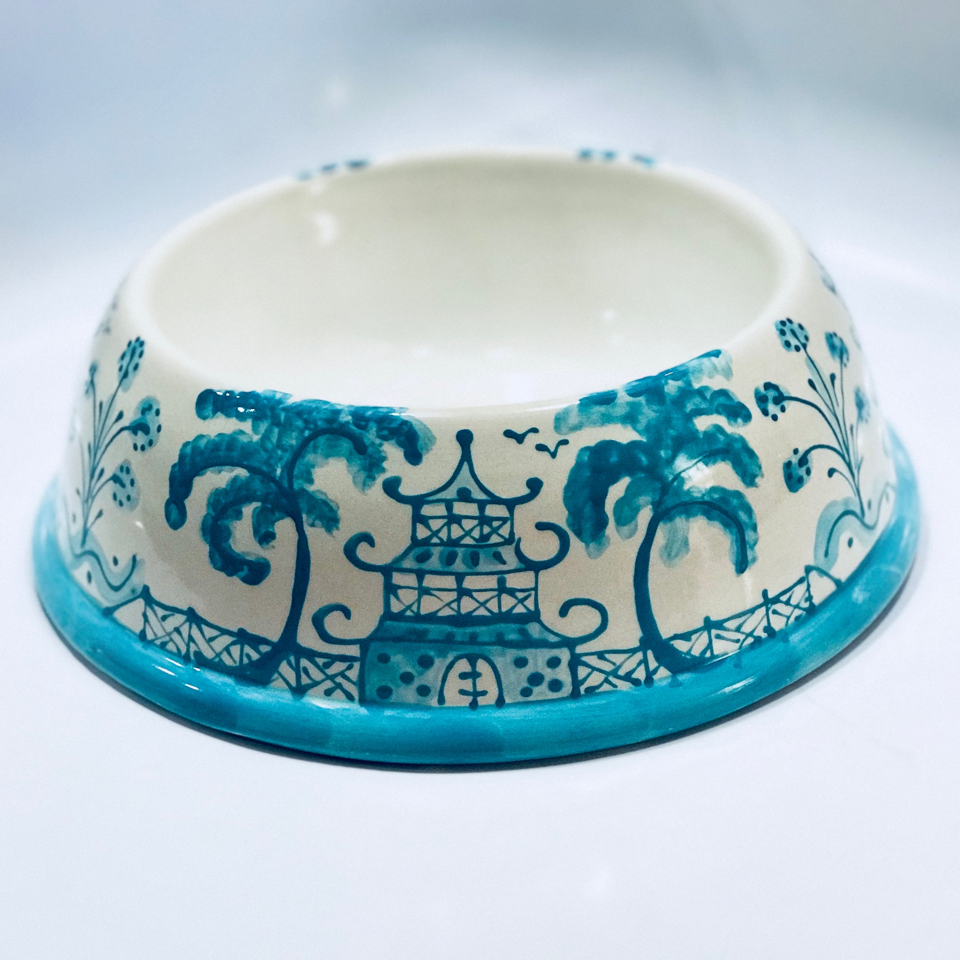 This hand painted ceramic caribbean blue chinoiserie pet bowl is the perfect gift for the stylish cat or dog! It is dishwasher safe as well as non-toxic. Made in the USA. Available in 8 beautiful colors!